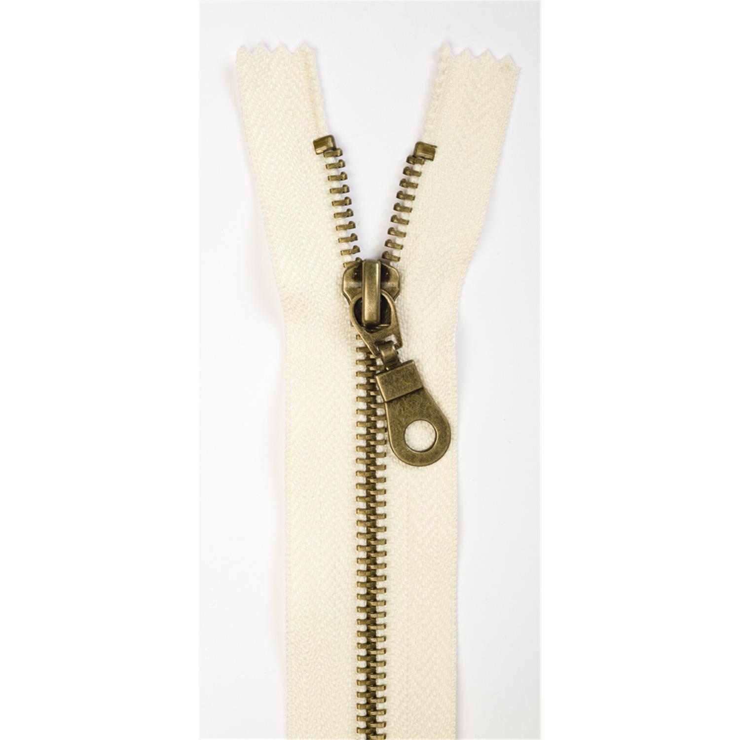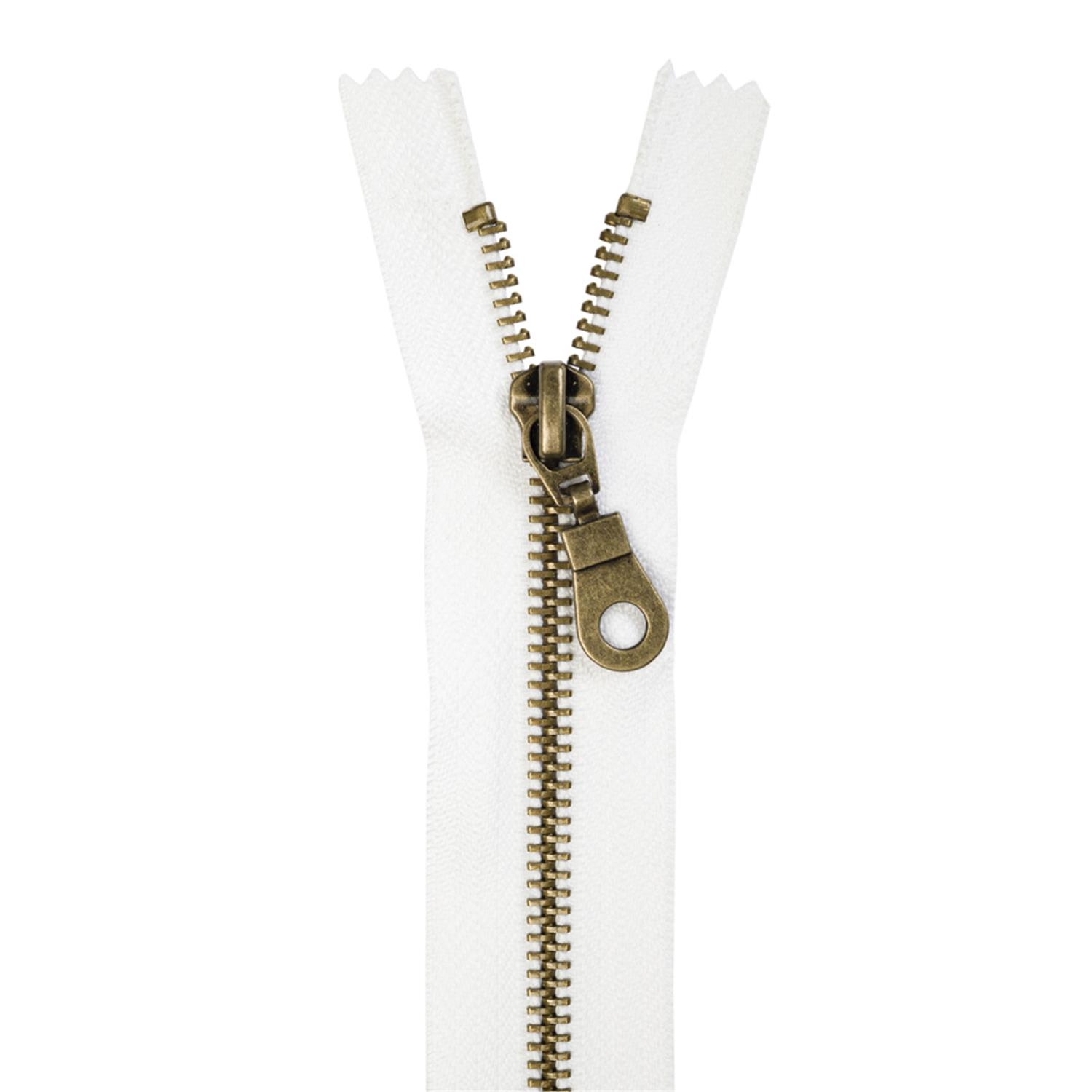1 Reißverschluss Metall, Messingschiene, nicht teilbar, 12cm, weiß #14